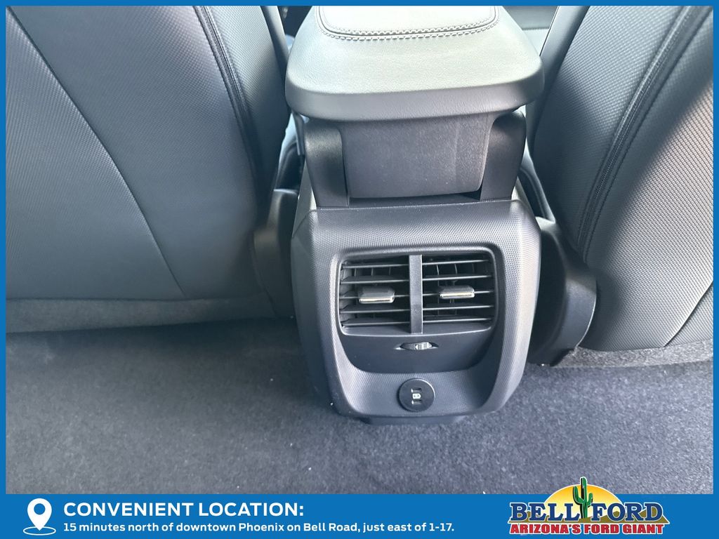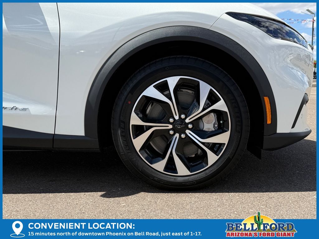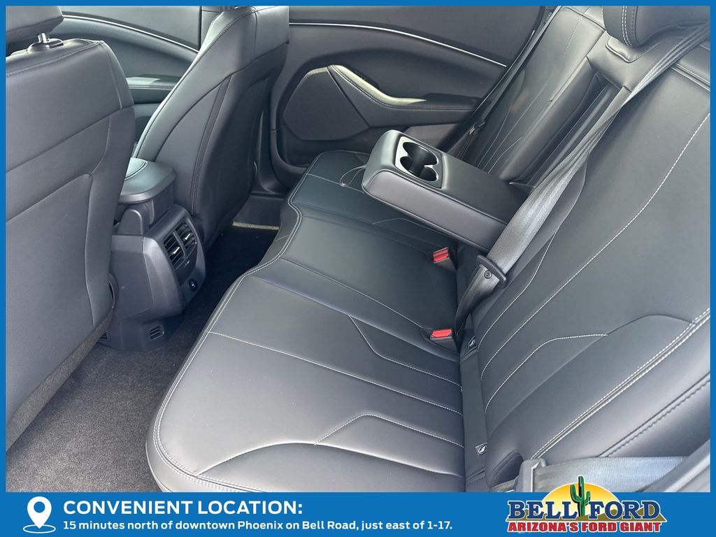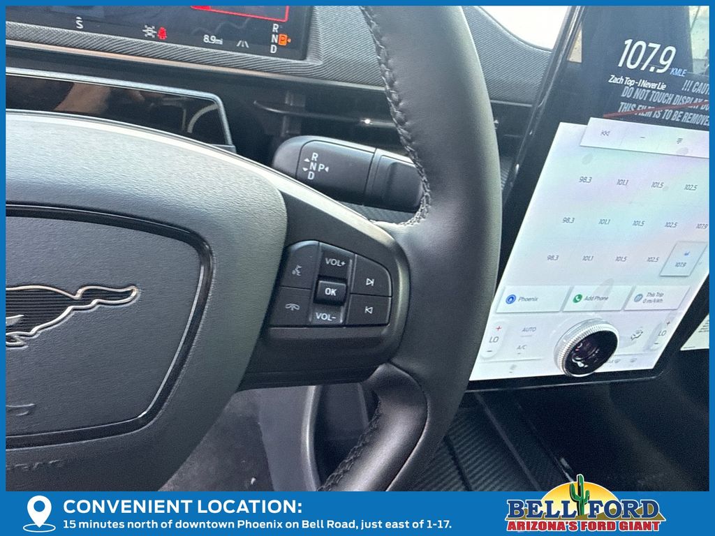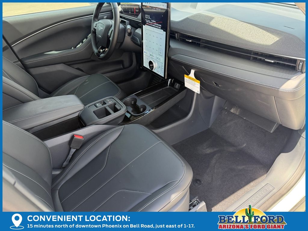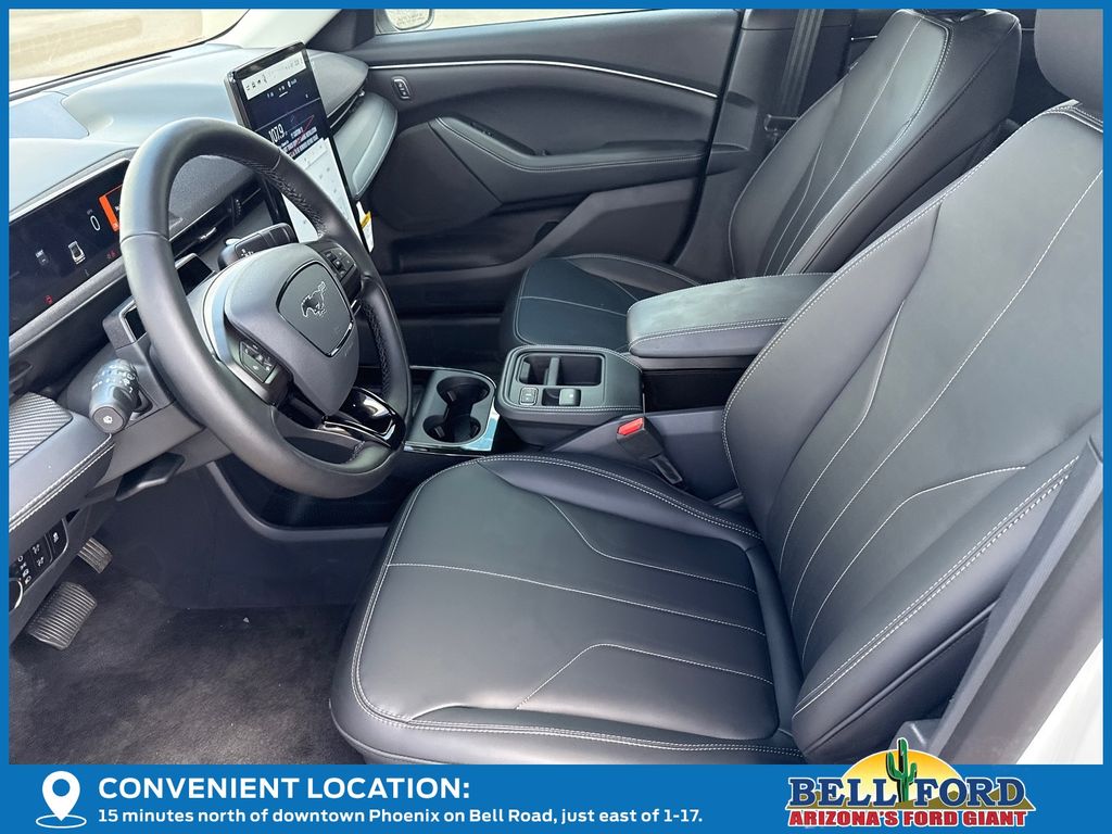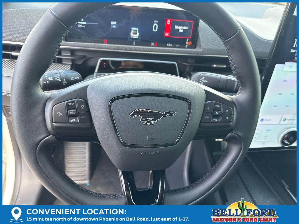 This Ford Mustang Mach-E is equipped with the following options: Equipment Group 100A Standard Package (ActiveX Bucket Seats, AM/FM Stereo, SiriusXM with 360L, SYNC 4A with Enhanced Voice Recognition, and Wheels: 19" Machined-Face Aluminum), Technology Package (BlueCruise (equipment + 1 Year + 90-Day Plan) and Ford Co-Pilot360 Active 2.0), 4-Wheel Disc Brakes, 6 Speakers, ABS brakes, Air Conditioning, Alloy wheels, AM/FM radio: SiriusXM with 360L, Apple CarPlay/Android Auto, Auto High-beam Headlights, Auto-dimming Rear-View mirror, Automatic temperature control, Brake assist, Bumpers: body-color, Compass, Delay-off headlights, Driver door bin, Driver vanity mirror, Dual front impact airbags, Dual front side impact airbags, Electronic Stability Control, Emergency communication system: 911 Assist, Exterior Parking Camera Rear, Four wheel independent suspension, Front anti-roll bar, Front Bucket Seats, Front Center Armrest, Front dual zone A/C, Front reading lights, Fully automatic headlights, Heated door mirrors, Illuminated entry, Knee airbag, Low tire pressure warning, Mobile Power Cord (120V/240V), Navigation system: Connected Navigation, Occupant sensing airbag, Outside temperature display, Overhead airbag, Overhead console, Panic alarm, Passenger door bin, Passenger vanity mirror, Power door mirrors, Power driver seat, Power steering, Power windows, Radio data system, Rain sensing wipers, Rear anti-roll bar, Rear seat center armrest, Rear side impact airbag, Rear window defroster, Rear window wiper, Remote keyless entry, Security system, Speed control, Speed-sensing steering, Speed-Sensitive Wipers, Split folding rear seat, Spoiler, Steering wheel mounted audio controls, Telescoping steering wheel, Tilt steering wheel, Tire Inflator and Sealant Kit, Traction control, Trip computer, Turn signal indicator mirrors, and Variably intermittent wipers.