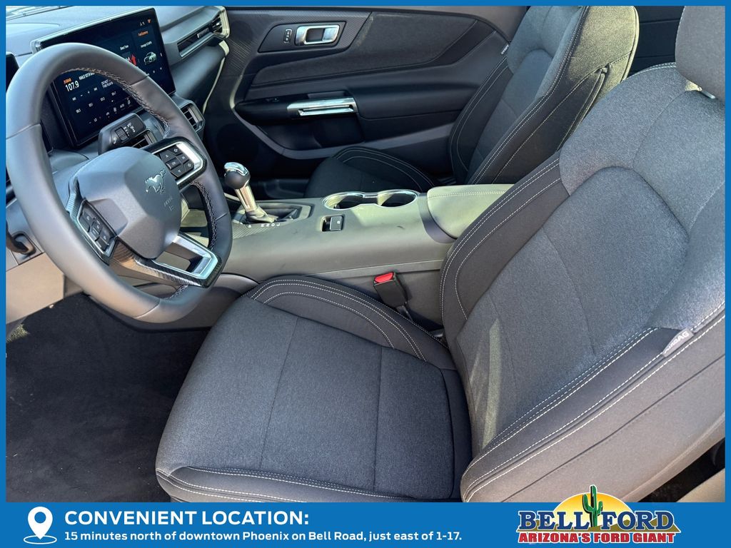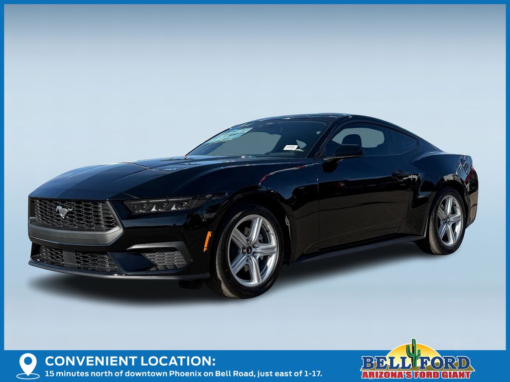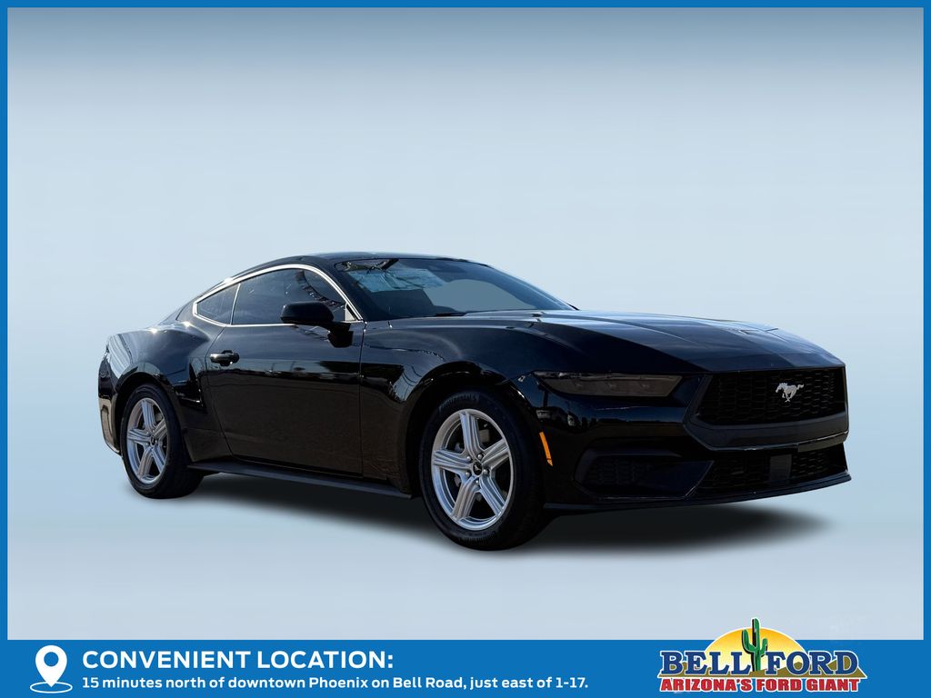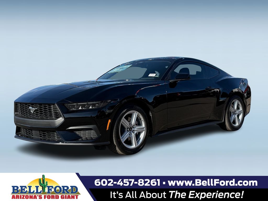 This Ford Mustang is equipped with the following options: Equipment Group 100A Standard Package (AM/FM Stereo, Cloth Bucket Seats, SYNC 4, and Wheels: 18" x 8" Painted Shadow Silver Cast Aluminum), 1st Row Carpeted Black Floor Mats, 4-Wheel Disc Brakes, 6 Speakers, ABS brakes, Air Conditioning, Alloy wheels, AM/FM radio, Auto High-beam Headlights, Automatic temperature control, Brake assist, Bumpers: body-color, Compass, Delay-off headlights, Driver door bin, Driver vanity mirror, Dual front impact airbags, Dual front side impact airbags, Electronic Stability Control, Emergency communication system: 911 Assist, Exterior Parking Camera Rear, Four wheel independent suspension, Front anti-roll bar, Front Bucket Seats, Front Center Armrest, Front dual zone A/C, Front reading lights, Fully automatic headlights, Illuminated entry, Knee airbag, Leather Shift Knob, Low tire pressure warning, Occupant sensing airbag, Outside temperature display, Overhead airbag, Overhead console, Panic alarm, Passenger door bin, Passenger vanity mirror, Power door mirrors, Power steering, Power windows, Radio data system, Rain sensing wipers, Rear anti-roll bar, Rear Parking Sensors, Rear window defroster, Remote keyless entry, Speed control, Speed-sensing steering, Speed-Sensitive Wipers, Split folding rear seat, Sport steering wheel, Steering wheel mounted audio controls, Tachometer, Telescoping steering wheel, Tilt steering wheel, Traction control, Trip computer, Variably intermittent wipers, and Voltmeter. Price includes: $1500 - Retail Customer Cash. Exp. 04/30/2026
