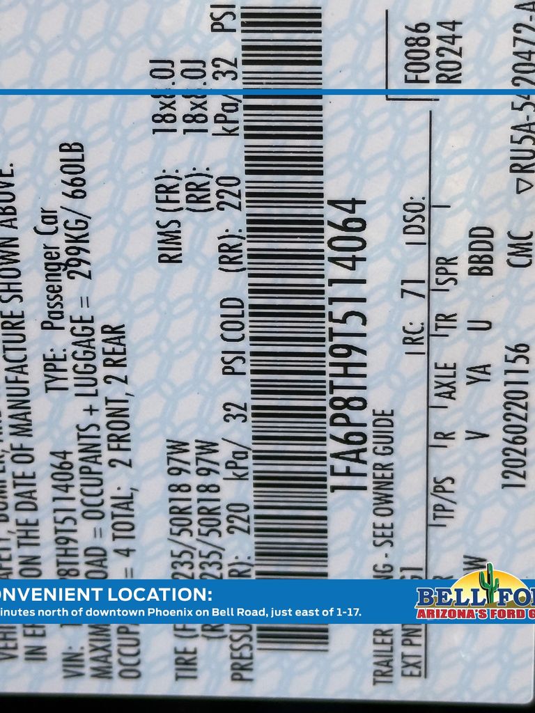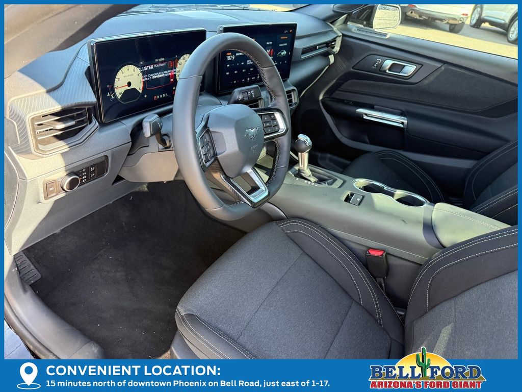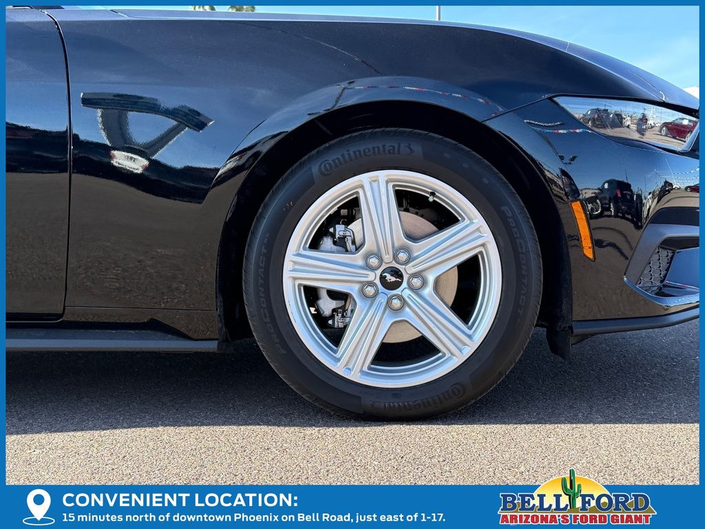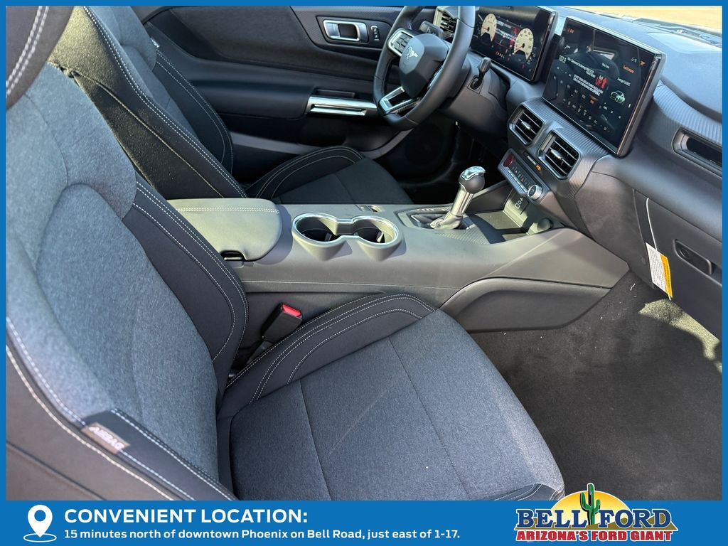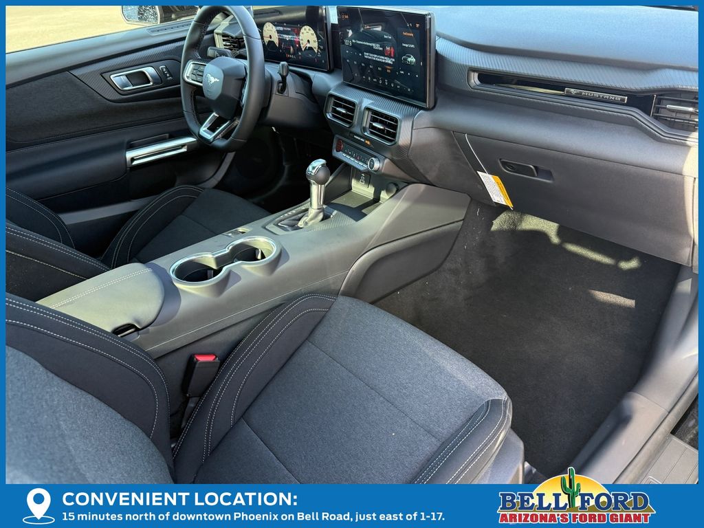 This Ford Mustang is equipped with the following options: Equipment Group 100A Standard Package (AM/FM Stereo, Cloth Bucket Seats, SYNC 4, and Wheels: 18" x 8" Painted Shadow Silver Cast Aluminum), 1st Row Carpeted Black Floor Mats, 4-Wheel Disc Brakes, 6 Speakers, ABS brakes, Air Conditioning, Alloy wheels, AM/FM radio, Auto High-beam Headlights, Automatic temperature control, Brake assist, Bumpers: body-color, Compass, Delay-off headlights, Driver door bin, Driver vanity mirror, Dual front impact airbags, Dual front side impact airbags, Electronic Stability Control, Emergency communication system: 911 Assist, Exterior Parking Camera Rear, Four wheel independent suspension, Front anti-roll bar, Front Bucket Seats, Front Center Armrest, Front dual zone A/C, Front reading lights, Fully automatic headlights, Illuminated entry, Knee airbag, Leather Shift Knob, Low tire pressure warning, Occupant sensing airbag, Outside temperature display, Overhead airbag, Overhead console, Panic alarm, Passenger door bin, Passenger vanity mirror, Power door mirrors, Power steering, Power windows, Radio data system, Rain sensing wipers, Rear anti-roll bar, Rear Parking Sensors, Rear window defroster, Remote keyless entry, Speed control, Speed-sensing steering, Speed-Sensitive Wipers, Split folding rear seat, Sport steering wheel, Steering wheel mounted audio controls, Tachometer, Telescoping steering wheel, Tilt steering wheel, Traction control, Trip computer, Variably intermittent wipers, and Voltmeter. Price includes: $1500 - Retail Customer Cash. Exp. 04/30/2026
