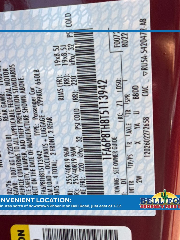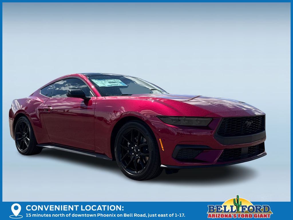 This Ford Mustang is equipped with the following options: Equipment Group 101A High Package (9-Speaker Stereo System, AM/FM Stereo, Cloth/Vinyl Heated Bucket Seats, SiriusXM with 360L and HD Radio, SYNC 4, and Wheels: 18" x 8" Painted Shadow Silver Cast Aluminum), Mustang Nite Pony Package (Black Front and Rear Pony Badges, Black Mirror Caps, Painted Black Roof, and Wheels: 19" x 8.5" Ebony Black-Painted Aluminum), 1st Row Carpeted Black Floor Mats, 4-Wheel Disc Brakes, 6 Speakers, ABS brakes, Air Conditioning, Alloy wheels, AM/FM radio, Auto High-beam Headlights, Automatic temperature control, Brake assist, Bumpers: body-color, Cloth Bucket Seats, Compass, Delay-off headlights, Driver door bin, Driver vanity mirror, Dual front impact airbags, Dual front side impact airbags, Electronic Stability Control, Emergency communication system: 911 Assist, Exterior Parking Camera Rear, Four wheel independent suspension, Front anti-roll bar, Front Bucket Seats, Front Center Armrest, Front dual zone A/C, Front reading lights, Fully automatic headlights, Illuminated entry, Knee airbag, Leather Shift Knob, Low tire pressure warning, Occupant sensing airbag, Outside temperature display, Overhead airbag, Overhead console, Panic alarm, Passenger door bin, Passenger vanity mirror, Power door mirrors, Power steering, Power windows, Radio data system, Rain sensing wipers, Rear anti-roll bar, Rear Parking Sensors, Rear window defroster, Remote keyless entry, Speed control, Speed-sensing steering, Speed-Sensitive Wipers, Split folding rear seat, Sport steering wheel, Steering wheel mounted audio controls, Tachometer, Telescoping steering wheel, Tilt steering wheel, Traction control, Trip computer, Variably intermittent wipers, and Voltmeter. Price includes: $1500 - Retail Customer Cash. Exp. 04/30/2026