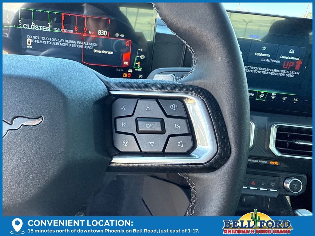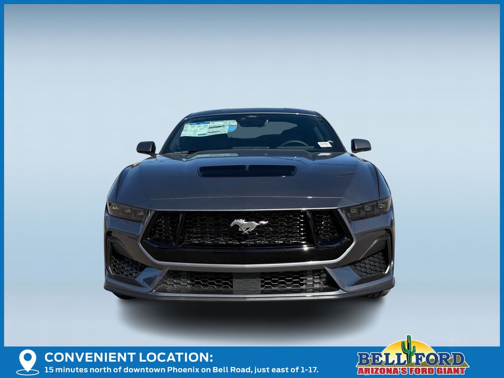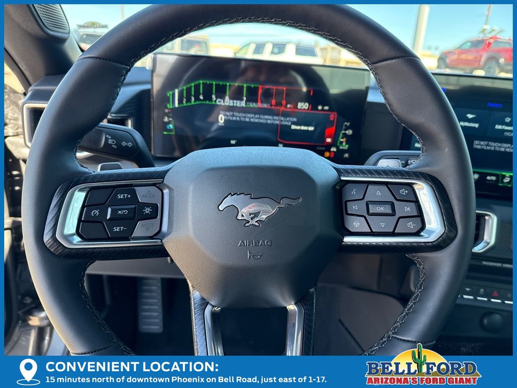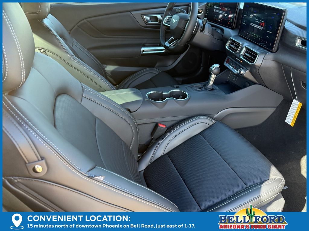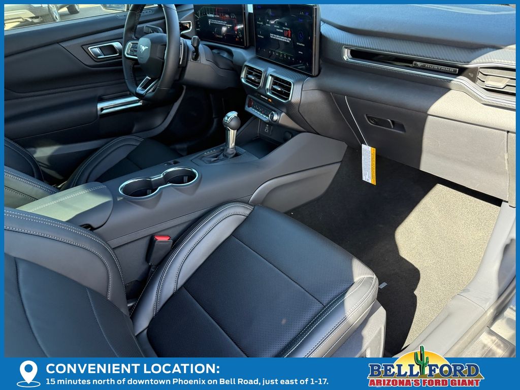 This Ford Mustang is equipped with the following options: Equipment Group 400A Standard Package (ActiveX Trimmed Bucket Seats, AM/FM Stereo, Climate Controlled Heated/Cooled Front Seats, HD Radio, SiriusXM with 360L, SYNC 4, and Wheels: 19" x 8.5" Shadow Silver-Painted Aluminum), 1st Row Carpeted Black Floor Mats, 4-Wheel Disc Brakes, 9 Speakers, ABS brakes, Active Valve Performance Exhaust, Air Conditioning, Alloy wheels, AM/FM radio: SiriusXM with 360L, Auto High-beam Headlights, Auto-dimming Rear-View mirror, Automatic temperature control, Brake assist, Bumpers: body-color, Compass, Delay-off headlights, Driver door bin, Driver vanity mirror, Dual front impact airbags, Dual front side impact airbags, Electronic Stability Control, Emergency communication system: 911 Assist, Exterior Parking Camera Rear, Four wheel independent suspension, Front anti-roll bar, Front Bucket Seats, Front Center Armrest, Front dual zone A/C, Front reading lights, Fully automatic headlights, Heated front seats, Heated steering wheel, Illuminated entry, Knee airbag, Leather Shift Knob, Leather steering wheel, Low tire pressure warning, Occupant sensing airbag, Outside temperature display, Overhead airbag, Overhead console, Panic alarm, Passenger door bin, Passenger vanity mirror, Power door mirrors, Power driver seat, Power passenger seat, Power steering, Power windows, Radio data system, Rain sensing wipers, Rear anti-roll bar, Rear Parking Sensors, Rear window defroster, Remote keyless entry, Speed control, Speed-sensing steering, Speed-Sensitive Wipers, Split folding rear seat, Sport steering wheel, Steering wheel mounted audio controls, Tachometer, Telescoping steering wheel, Tilt steering wheel, Traction control, Trip computer, Variably intermittent wipers, Ventilated front seats, Voltmeter, Wedge Decklid Spoiler, and Wheels: 20" x 9" Premium-Painted Aluminum. Price includes: $1500 - Retail Customer Cash. Exp. 04/30/2026