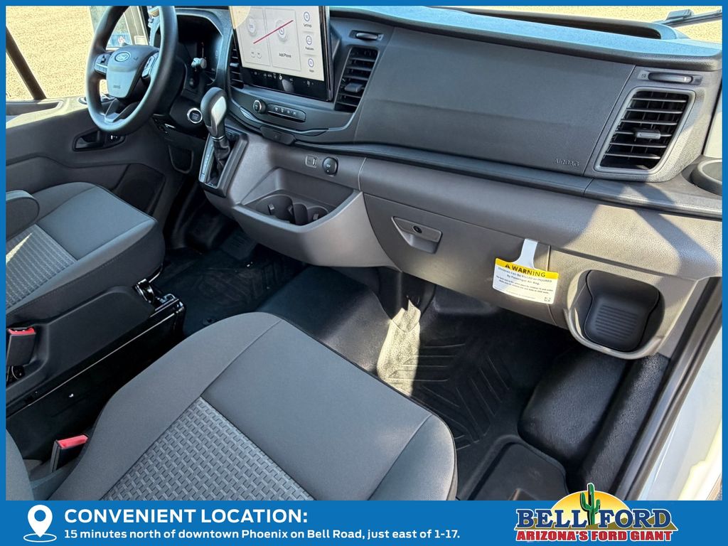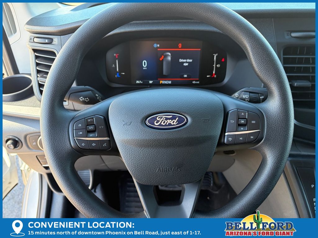 This Ford Transit-150 is equipped with the following options: Ford Connectivity Package (1-Year Included), Order Code 101A, 2 Additional Keys (4 Total), 4 Speakers, 4-Wheel Disc Brakes, ABS brakes, Air Conditioning, AM/FM radio, AM/FM Stereo, Apple CarPlay/Android Auto, Auto High-beam Headlights, Brake assist, Dark Palazzo Gray Cloth Bucket Seats w/Armrests, Dark Palazzo Gray Vinyl Bucket Seats, Delay-off headlights, Driver door bin, Driver's Seat Mounted Armrest, Dual front impact airbags, Dual front side impact airbags, Electronic Stability Control, Emergency communication system: 911 Assist, Exterior Parking Camera Rear, Front & Rear Vinyl Floor Covering, Front anti-roll bar, Front Bucket Seats, Front License Plate Bracket, Front reading lights, Front wheel independent suspension, Full Rear Compartment Lighting, Fully automatic headlights, Illuminated entry, Low tire pressure warning, Navigation system: Connected Navigation, Occupant sensing airbag, Overhead airbag, Panic alarm, Passenger cancellable airbag, Passenger door bin, Passenger-Side B-Pillar Assist Handle, Power door mirrors, Power steering, Power windows, Remote keyless entry, Speed control, Steering wheel mounted audio controls, SYNC 4, Tachometer, Telescoping steering wheel, Tilt steering wheel, Traction control, Variably intermittent wipers, Vinyl Front Bucket Seats, and Wheels: 16" Silver Steel w/Black Hubcap. Price includes: $1000 - Retail Customer Cash. Exp. 01/05/2026