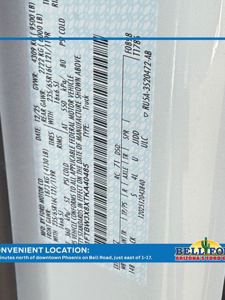- VIN : 1FTBW3X8XTKA40485