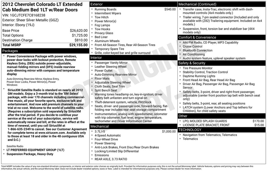 Sheer Silver Metallic 2012 Chevrolet Colorado 4WD 4-Speed Automatic with Overdrive 3.7L 5-Cylinder SFI DOHC