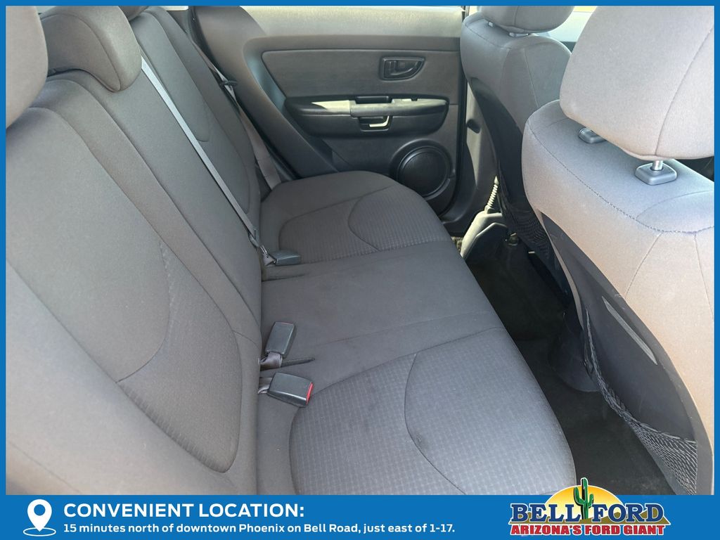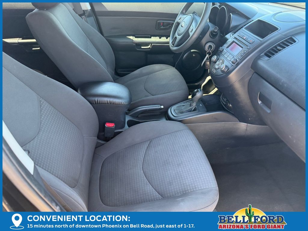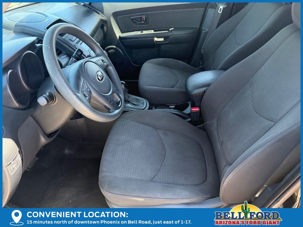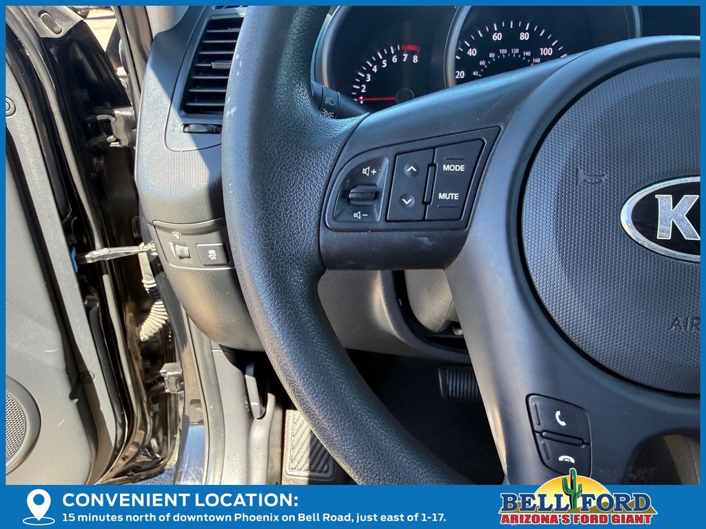 ** HERE AT BELL FORD ITS ALL ABOUT THE EXPERIENCE** Please visit us online at www.bellford.com This Kia Soul is equipped with the following options: 15" x 6.0J Steel w/Full Wheel Covers Wheels, 16" Alloy Wheels, 4 Speakers, 4-Wheel Disc Brakes, ABS brakes, Air Conditioning, AM/FM radio: SiriusXM, AM/FM/CD/MP3 Audio System, Anti-whiplash front head restraints, Bodyside moldings, Brake assist, Bumpers: body-color, Cargo Cover, Cargo Net, Carpeted Floor Mats, CD player, Driver door bin, Dual front impact airbags, Dual front side impact airbags, Electronic Stability Control, Front anti-roll bar, Front Bucket Seats, Front wheel independent suspension, Illuminated entry, Low tire pressure warning, Occupant sensing airbag, Outside temperature display, Overhead airbag, Panic alarm, Passenger door bin, Power steering, Power windows, Rear Bumper Applique, Rear window defroster, Rear window wiper, Remote keyless entry, Speed control, Speed-sensing steering, Split folding rear seat, Steering wheel mounted audio controls, Tachometer, Telescoping steering wheel, Tilt steering wheel, Traction control, Trip computer, Variably intermittent wipers, and Woven Cloth Seat TriM.