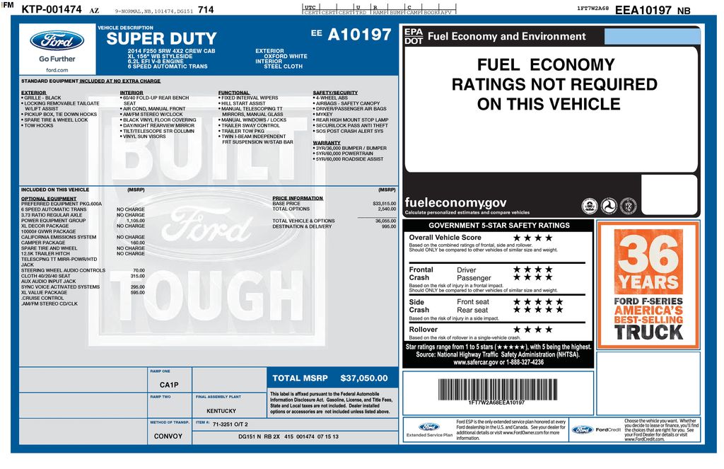 Oxford White 2014 Ford F-250SD XL RWD TorqShift 6-Speed Automatic 6.2L V8 EFI SOHC 16V Flex Fuel