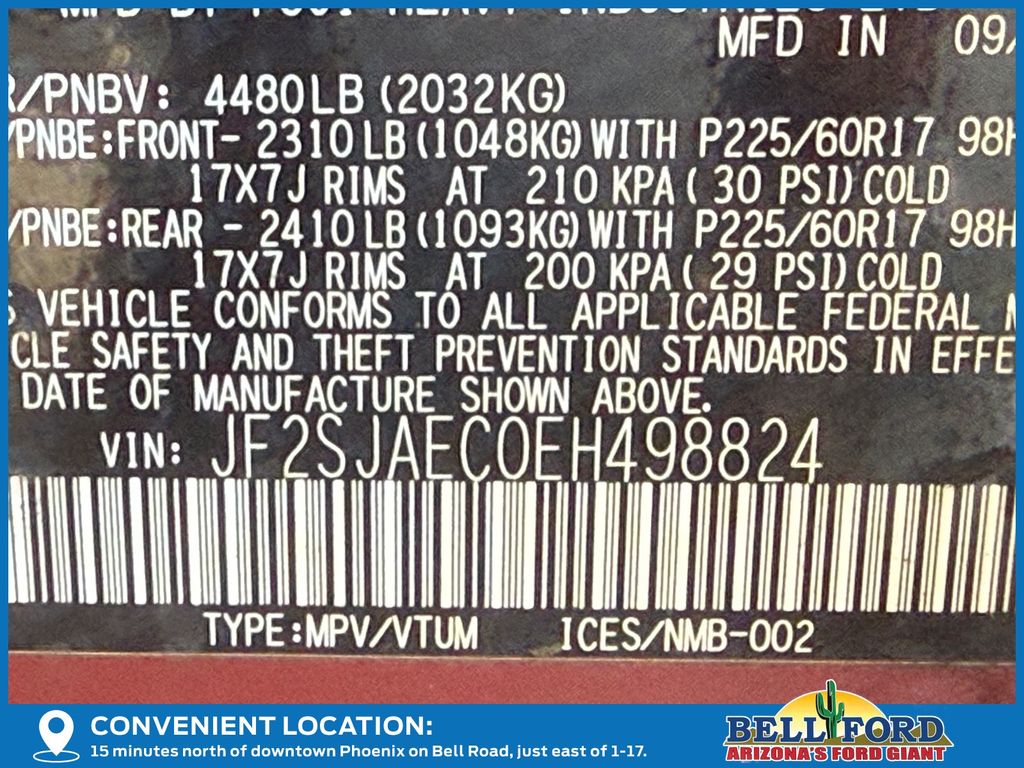 - VIN : JF2SJAEC0EH498824