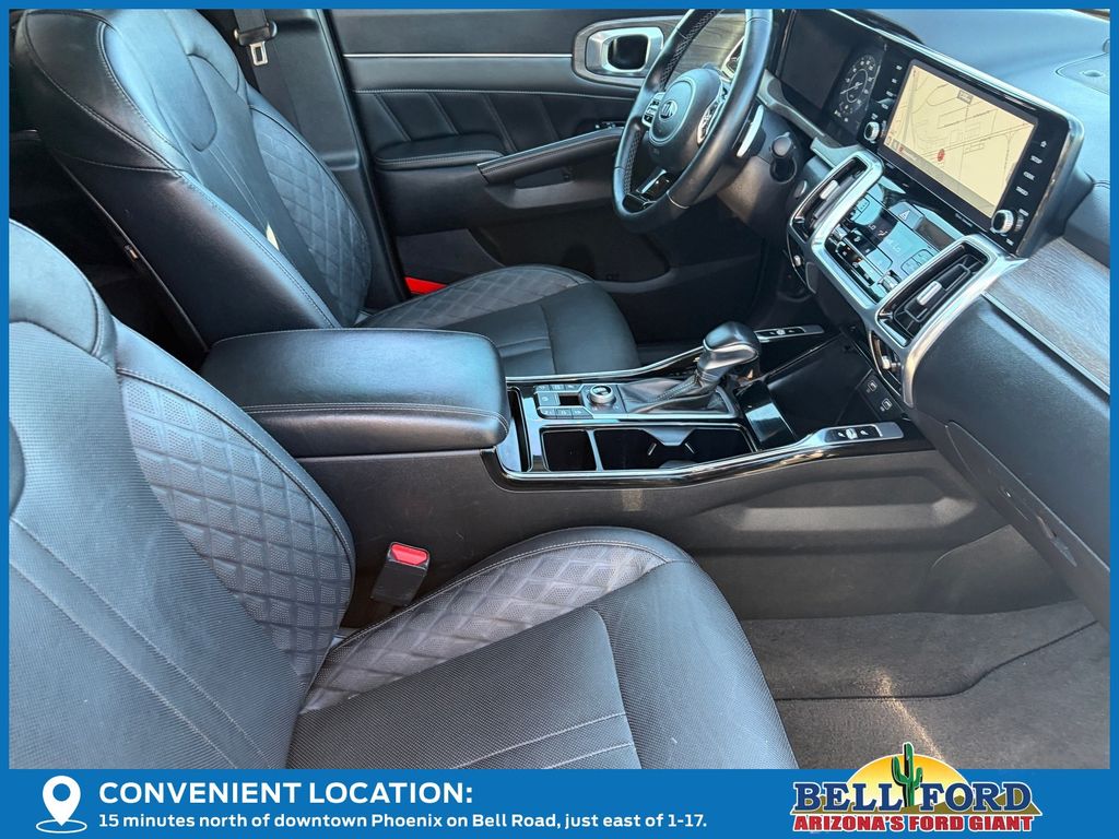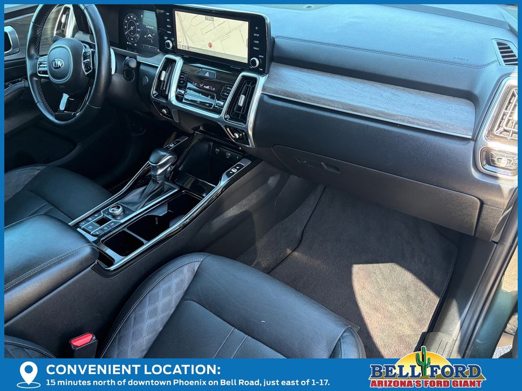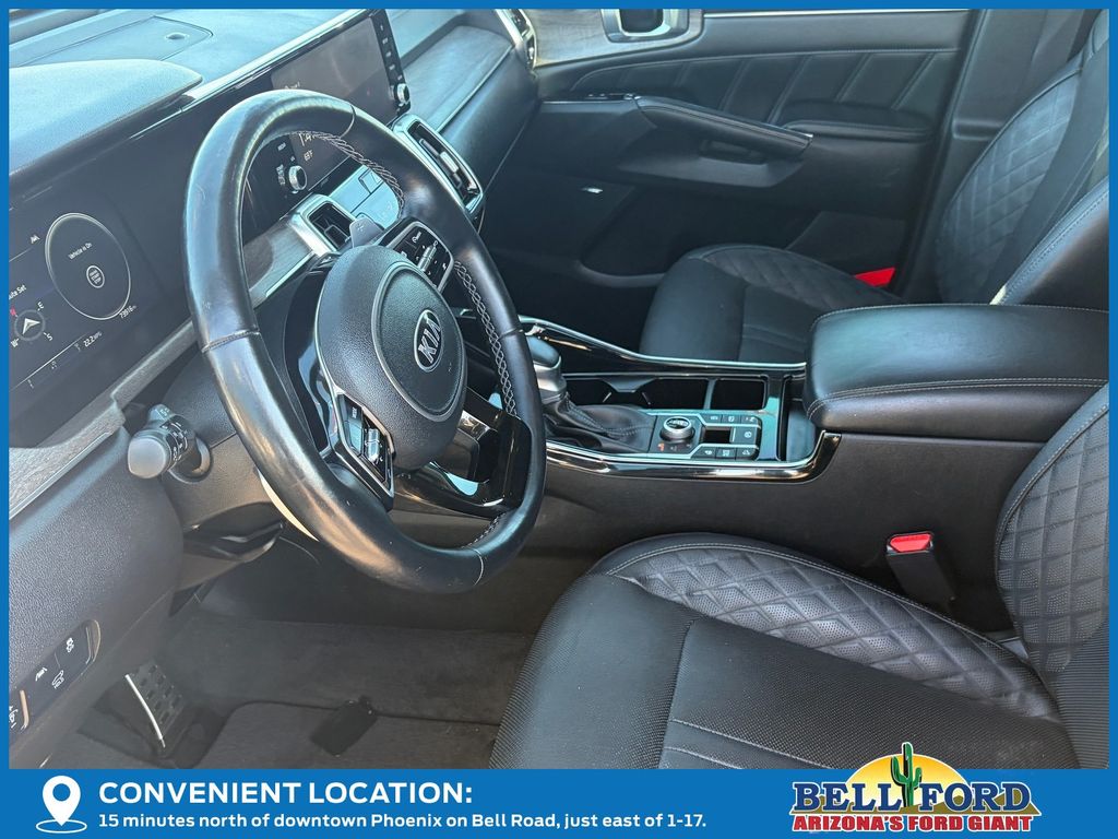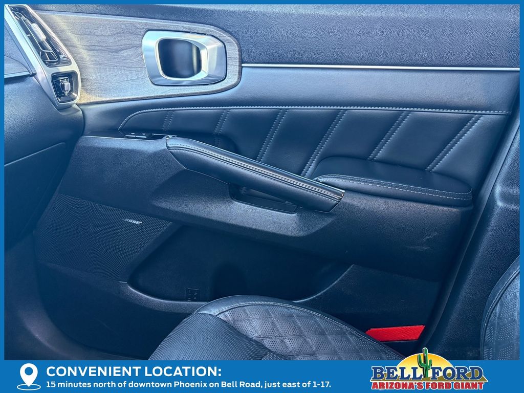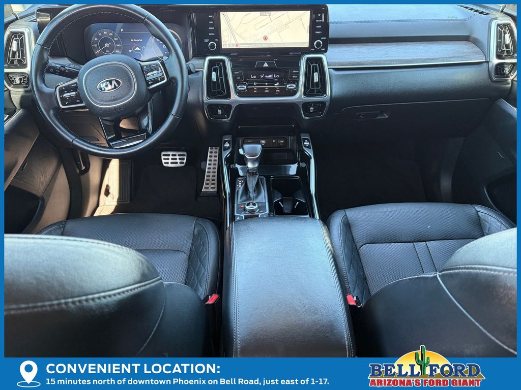 ** HERE AT BELL FORD ITS ALL ABOUT THE EXPERIENCE** Please visit us online at www.bellford.com This Kia Sorento is equipped with the following options: X-Line SX Prestige Rust Color Package, AWD, Apple CarPlay & Android Auto, Brake assist, Electronic Stability Control, Power driver seat, Power Liftgate, Power moonroof, Radio: AM/FM Premium Bose Audio System w/Nav, Wheels: 20" Grey Finish Alloy, 12 Speakers, 3.316 Axle Ratio, 3rd row seats: split-bench, 4-Wheel Disc Brakes, ABS brakes, Air Conditioning, Alloy wheels, AM/FM radio: SiriusXM, Auto High-beam Headlights, Auto-dimming Rear-View mirror, Automatic temperature control, Bumpers: body-color, Cargo Net, Carpeted Floor Mats, Delay-off headlights, Driver door bin, Driver vanity mirror, Dual front impact airbags, Dual front side impact airbags, Emergency communication system: UVO link, Four wheel independent suspension, Front anti-roll bar, Front Bucket Seats, Front Center Armrest, Front dual zone A/C, Front fog lights, Front reading lights, Fully automatic headlights, Heated & Ventilated Front Bucket Seats, Heated door mirrors, Heated front seats, Heated steering wheel, Illuminated entry, Knee airbag, Leather steering wheel, Low tire pressure warning, Navigation System, Occupant sensing airbag, Outside temperature display, Overhead airbag, Overhead console, Panic alarm, Passenger door bin, Passenger vanity mirror, Perforated Genuine Leather Seat Trim, Power door mirrors, Power passenger seat, Power steering, Power windows, Radio data system, Rear air conditioning, Rear anti-roll bar, Rear reading lights, Rear window defroster, Rear window wiper, Remote keyless entry, Roof rack, Security system, Smart Key w/ Push Button and Remote Start, Speed control, Speed-sensing steering, Split folding rear seat, Spoiler, Steering wheel mounted audio controls, Tachometer, Telescoping steering wheel, Tilt steering wheel, Traction control, Trip computer, Turn signal indicator mirrors, Variably intermittent wipers, and Ventilated front seatS.