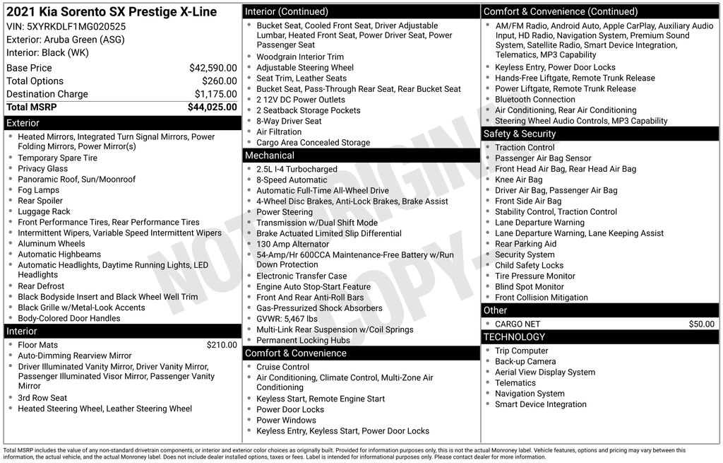 Aruba Green 2021 Kia Sorento SX Prestige X-Line AWD 8-Speed DCT 2.5L I4 DGI Turbocharged DOHC 16V LEV3-ULEV70 281hp