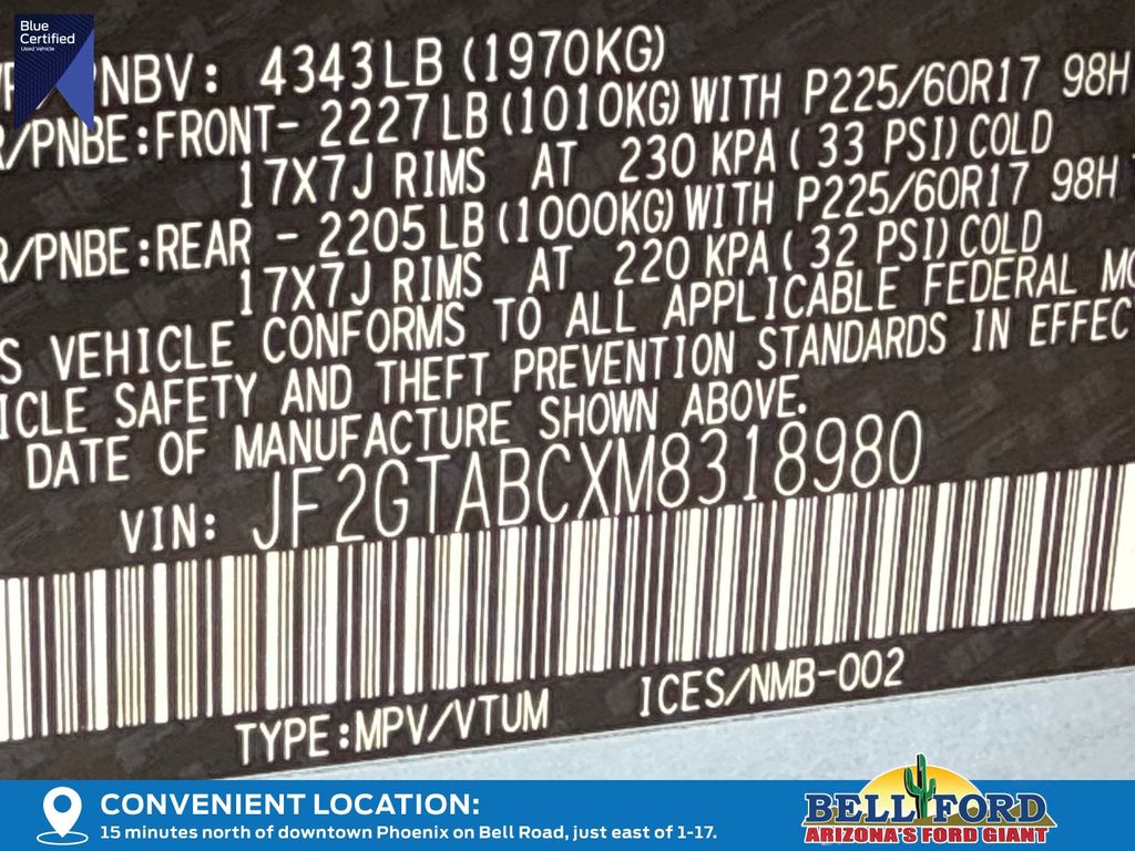 - VIN : JF2GTABCXM8318980