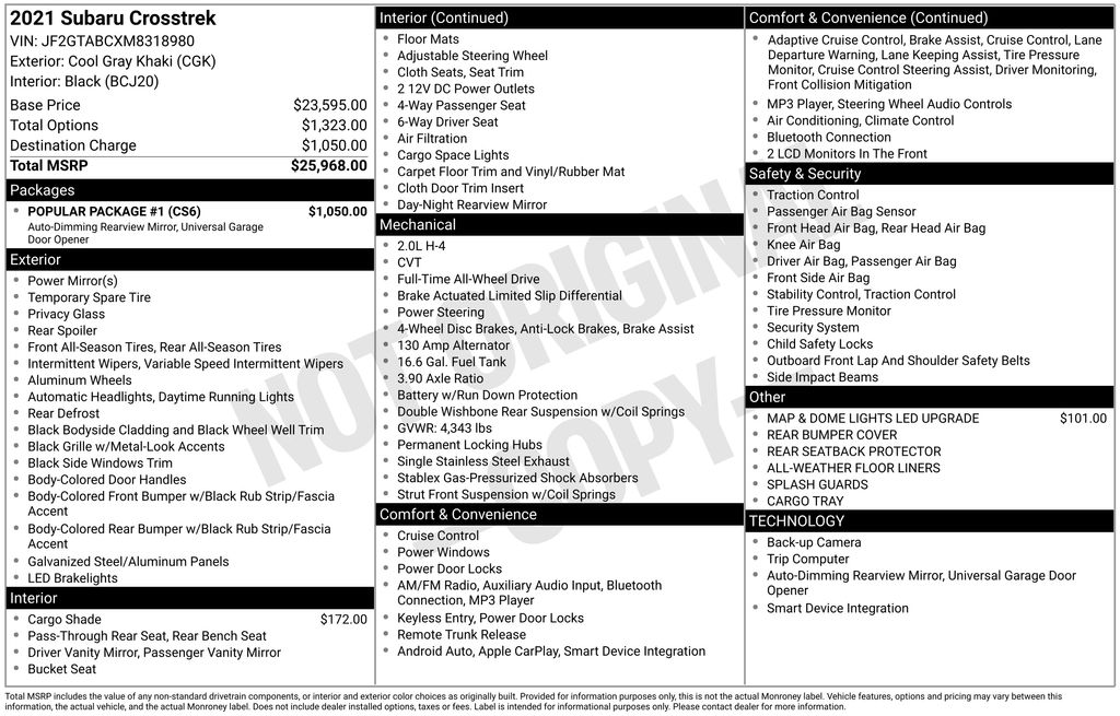 This 2021 Subaru Crosstrek Base comes equipped with an impressive array of features, including: