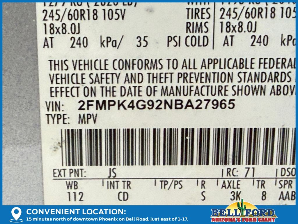 - VIN : 2FMPK4G92NBA27965