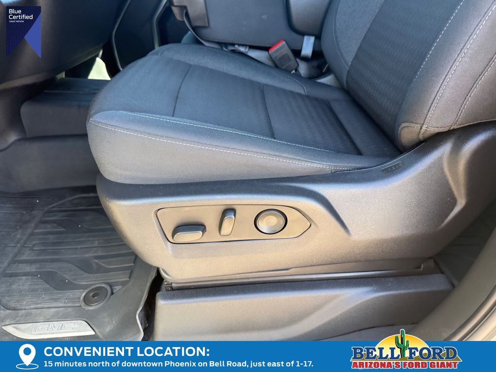 Step inside the cabin, and you'll be greeted by a wealth of premium features, including a Premium GMC Infotainment Audio System, Heated Steering Wheel, and Heated Front Seats. The Cloth Seat Trim and Color-Keyed Carpeting Floor Covering provide a comfortable and refined environment, while the 10-Way Power Driver Seat Adjuster with Lumbar and 4-Way Manual Passenger Seat Adjuster ensure optimal support and comfort.