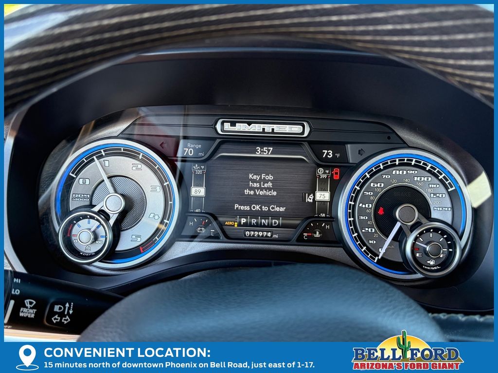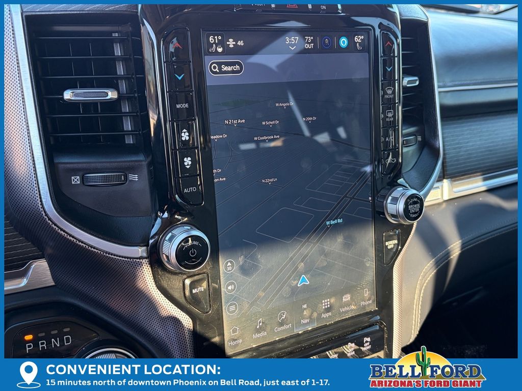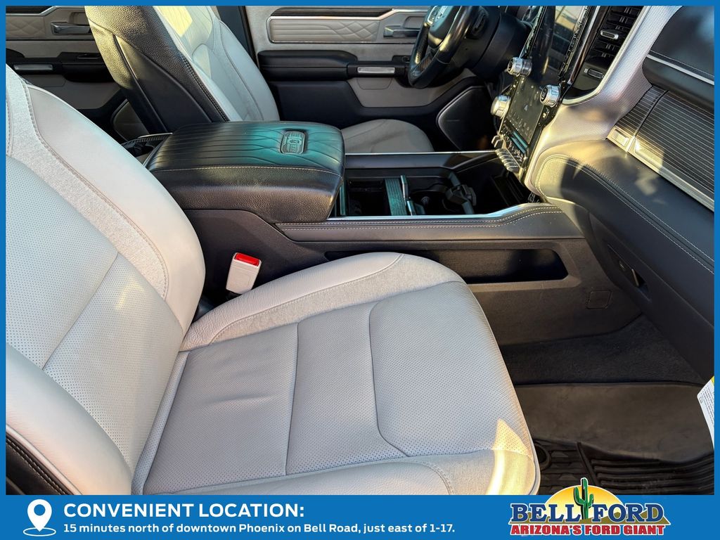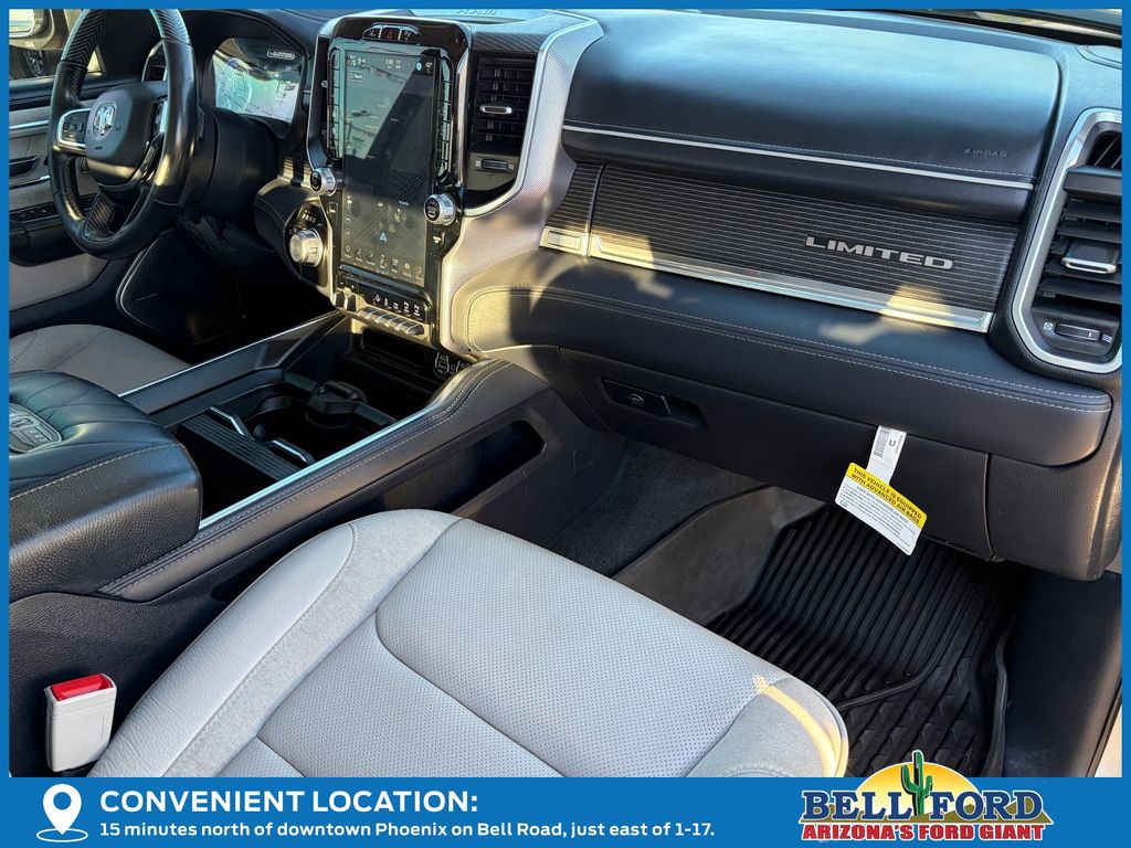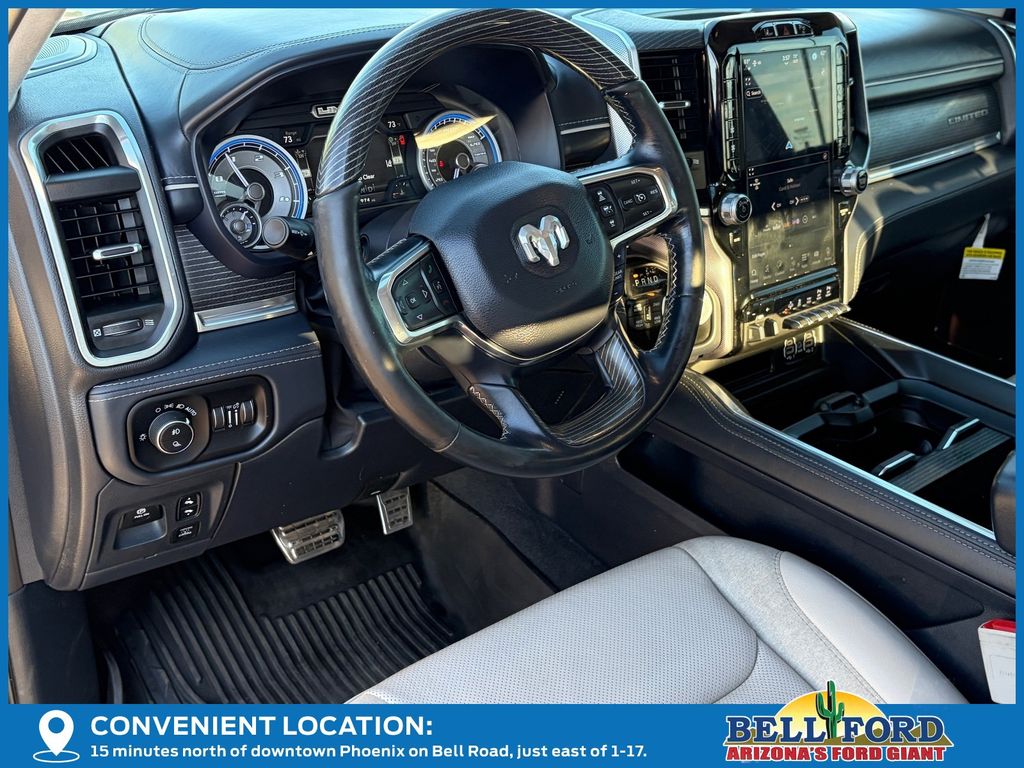 ** HERE AT BELL FORD ITS ALL ABOUT THE EXPERIENCE** Please visit us online at www.bellford.com This Ram 1500 is equipped with the following options: Body Color Bumper Group (Body Color Front Bumper and Body Color Rear Bumper w/Step Pads), Cold Weather Group (Engine Block Heater and MOPAR Winter Front Grille Cover), Limited 10th Anniversary Edition (4 Way Front Headrests, Bucket Seats, Driver Seat Memory, Front Seat Back Map Pockets, Full Length Premium Floor Console, Heated Front Seats, Heated Second Row Seats, Heated Steering Wheel, Instrument Cluster Theme 8, MOPAR 4 Adjustable Cargo Tie-Down Hooks, MOPAR Bright Pedal Kit, MOPAR Deployable Bed Step Center Mount, Multi-Function Tailgate, Power 4-Way Driver Lumbar Adjust, Power 4-Way Passenger Lumbar Adjust, Power 8-Way Driver & Passenger Seats, Premium Quilted Leather Bucket Seats, Rear 60/40 Folding Split Recline Seat, Rotary Shifter-Jeweled, Suede Headliner, Tailgate Ajar Warning Lamp, Ventilated Front Seats, Ventilated Rear Seats, and harman/kardon 19 Speaker Premium Sound), Quick Order Package 28M Limited, Limited Level 1 Equipment Group (Adaptive Cruise Control w/Stop & Go, Digital Rearview Mirror, Heads-Up Display, Lane Keep Assist, LED CHMSL Lamp, Parallel & Perp Park Assist w/Stop, Pedestrian Emergency Braking, and Surround View Camera System), Night Edition (Accent Color Premium Power Mirrors, Auto-Dimming Exterior Driver Mirror, Auto-Dimming Exterior Passenger Mirror, Black Day Light Opening Moldings, Black Exterior Truck Badging, Black Grille Surround Texture 7 Black, Black Headlamp Bezels, Black Painted Exterior Mirrors Caps, Body Color Door Handles, Convex Wide-Angle Mirror Insert, Dual Exhaust w/Black Tips, Exterior Mirrors Courtesy Lamps, Exterior Mirrors w/Heating Element, Exterior Mirrors w/Memory, Exterior Mirrors w/Supplemental Signals, Power-Folding Mirrors, RAM Grille Badge - Black, Sport Performance Hood, Tow Hooks, Tri-Fold Tonneau Cover, and Wheels: 22" x 9" Black Aluminum), 10 Speakers, 3.21 Rear Axle Ratio, 33 Gallon Fuel Tank, 4-Wheel Disc Brakes, 48V Belt Starter Generator, ABS brakes, Active Noise Control System, Adjustable pedals, Air Conditioning, Alloy wheels, AM/FM radio: SiriusXM with 360L, Apple CarPlay/Android Auto, Audio memory, Auto High-beam Headlights, Auto-dimming door mirrors, Auto-dimming Rear-View mirror, Auto-leveling suspension, Automatic temperature control, Bodyside moldings, Brake assist, Bumpers: chrome, Chrome Exterior Mirrors, Chrome Power-Fold Trailer Tow Mirrors, Compass, Delay-off headlights, Driver door bin, Driver vanity mirror, Dual front impact airbags, Dual front side impact airbags, Dual Rear Exhaust w/Bright Tips, Electronic Stability Control, Exterior 115V AC Outlet, Front anti-roll bar, Front Bucket Seats, Front Center Armrest w/Storage, Front dual zone A/C, Front fog lights, Front License Plate Bracket, Front reading lights, Front wheel independent suspension, Fully automatic headlights, Garage door transmitter, Genuine wood console insert, Genuine wood dashboard insert, Genuine wood door panel insert, Heated door mirrors, Heated front seats, Heated rear seats, Heated steering wheel, Heavy-Duty Engine Cooling, HEMI Badge, Illuminated entry, Leather steering wheel, Low tire pressure warning, Manufacturer's Statement of Origin, Memory seat, Mirror Clearance/Running Lights, Mirror-Mounted Aux Reverse Lamps, Navigation System, Occupant sensing airbag, Outside temperature display, Overhead airbag, Overhead console, Panic alarm, ParkView Rear Back-Up Camera, Passenger door bin, Passenger vanity mirror, Pedal memory, Power door mirrors, Power driver seat, Power passenger seat, Power steering, Power windows, Premium Leather Trimmed Bucket Seats, Radio data system, Radio: Uconnect 5 Nav w/12.0" Display, Rain sensing wipers, RamBox Cargo Management System, Rear anti-roll bar, Rear seat center armrest, Rear step bumper, Rear window defroster, Remote keyless entry, Security system, Speed control, Split folding rear seat, St