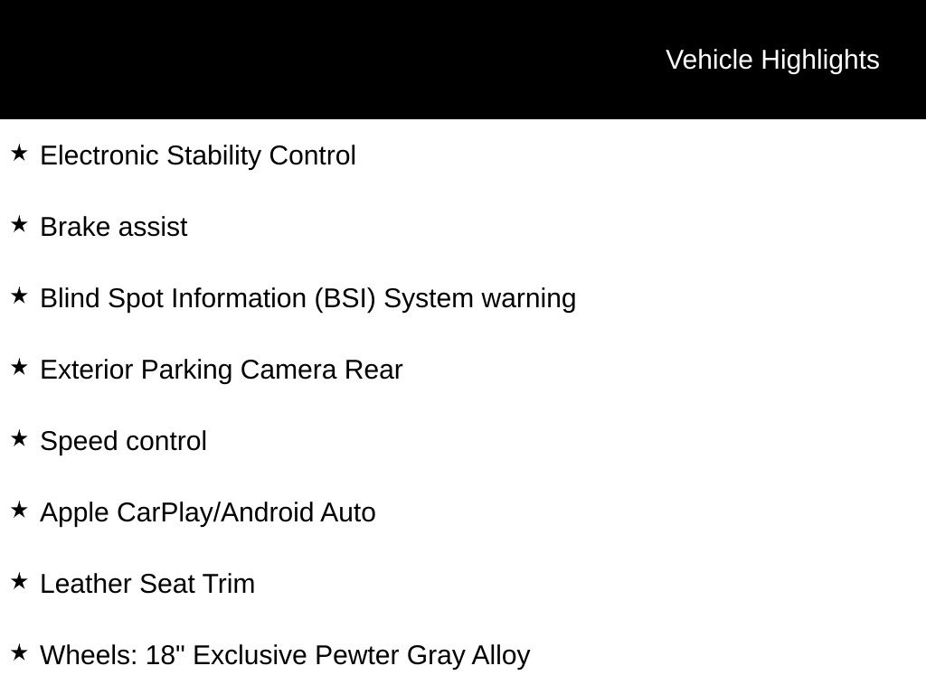 - Wheels: 18" Exclusive Pewter Gray Alloy