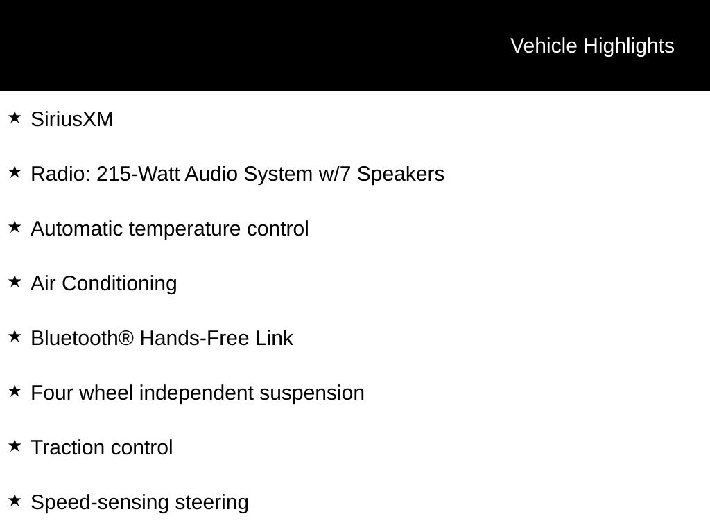 - Radio: 215-Watt Audio System w/7 Speakers