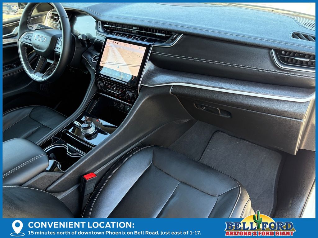 ** HERE AT BELL FORD ITS ALL ABOUT THE EXPERIENCE** Please visit us online at www.bellford.com This Jeep Grand Cherokee is equipped with the following options: Black Appearance Package (Gloss Black Exterior Accents, Molded In Color Black/Gloss Black Roof Rails, and Wheels: 20" x 8.5" Gloss Black Painted Aluminum), Quick Order Package 22E, Trailer Tow Prep Group (B) (DISC) (220 Amp Alternator, Automatic Headlamp Levelling System, Heavy-Duty Engine Cooling, Rear Load Levelling Suspension, and Trailer Hitch Zoom), 4WD, Dual-Pane Panoramic Sunroof, 3.45 Rear Axle Ratio, 4-Wheel Disc Brakes, 6 Speakers, ABS brakes, Active Noise Control System, Air Conditioning, Alloy wheels, AM/FM radio: SiriusXM with 360L, Anti-whiplash front head restraints, Audio memory, Auto High-beam Headlights, Automatic temperature control, Brake assist, Bumpers: body-color, Capri Leatherette Seats, Compass, Delay-off headlights, Driver door bin, Driver vanity mirror, Dual front impact airbags, Dual front side impact airbags, Electronic Stability Control, Emergency communication system, Four wheel independent suspension, Front anti-roll bar, Front Bucket Seats, Front Center Armrest w/Storage, Front dual zone A/C, Front fog lights, Front License Plate Bracket, Front reading lights, Fully automatic headlights, Garage door transmitter, Heated door mirrors, Heated front seats, Heated rear seats, Heated steering wheel, Illuminated entry, Knee airbag, Low tire pressure warning, Memory seat, Navigation System, Normal Duty Suspension, Occupant sensing airbag, Outside temperature display, Overhead airbag, Overhead console, Panic alarm, ParkView Rear Back-Up Camera, Passenger door bin, Passenger vanity mirror, Power door mirrors, Power driver seat, Power Liftgate, Power passenger seat, Power steering, Power windows, Radio data system, Radio: Uconnect 5 Nav w/10.1" Display, Rear anti-roll bar, Rear reading lights, Rear window defroster, Rear window wiper, Remote keyless entry, Security system, Speed control, Speed-Sensitive Wipers, Split folding rear seat, Spoiler, Steering wheel mounted audio controls, Tachometer, Telescoping steering wheel, Tilt steering wheel, Traction control, Trip computer, Turn signal indicator mirrors, Variably intermittent wipers, Voltmeter, and Wheels: 18" x 8" Fully Painted AluminuM.
