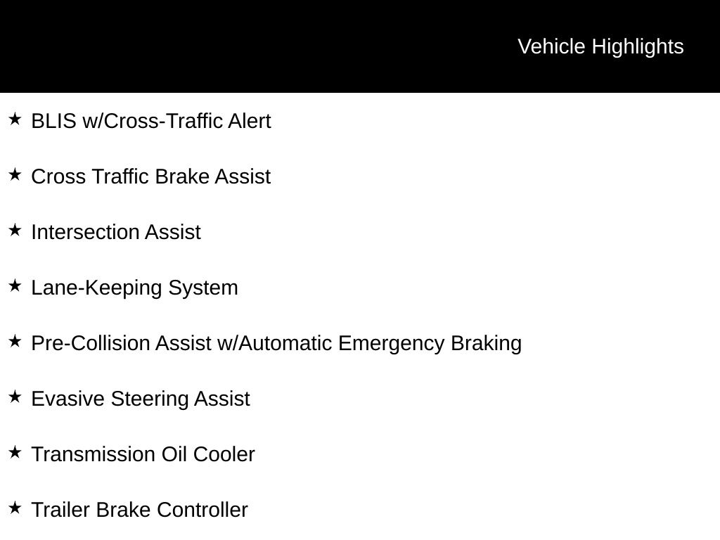 - Pre-Collision Assist w/Automatic Emergency Braking
