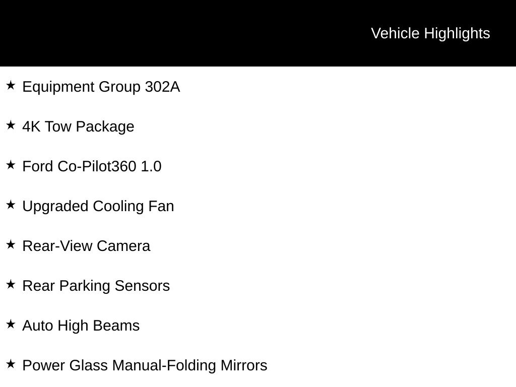 Inside, you'll find a well-appointed cabin with thoughtful amenities. The SYNC 4 infotainment system with enhanced voice recognition keeps you connected, while features like the Rear-View Camera, Auto High Beams, and Lane-Keeping System provide added peace of mind and convenience.