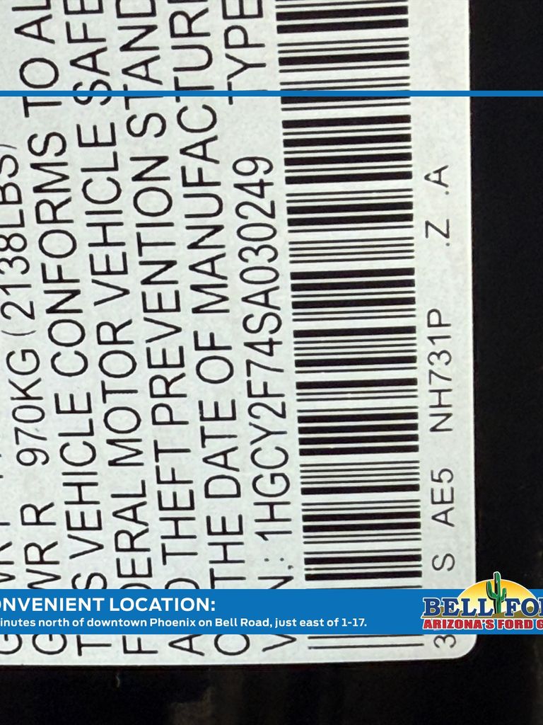 - VIN : 1HGCY2F74SA030249